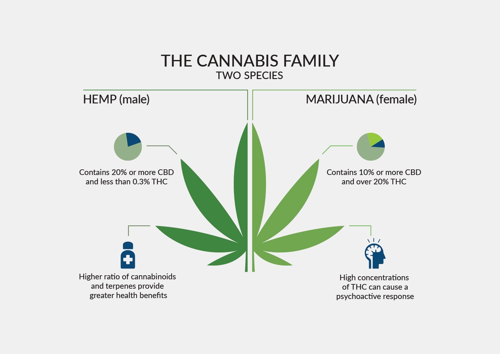 Originating in Central Asia, this plant has been involved in mankind’s medicine and fiber applications since the beginning of time. More than 540 phytochemicals come from hemp, and their properties can help people with pain, inflammation, sleep, and mood disorders. This multi-purpose crop is harvested specifically to the desired use. Hemp describes a cannabis sativa plant with trace to no amount of THC while marijuana is a cannabis sativa plant harvested for its trichomes, which have high amounts of THC.